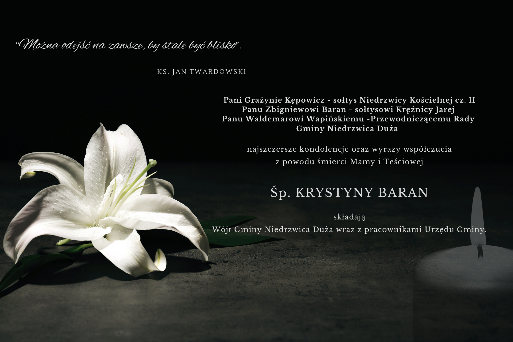 Kondolencje - dn. 01.08.2025 r.