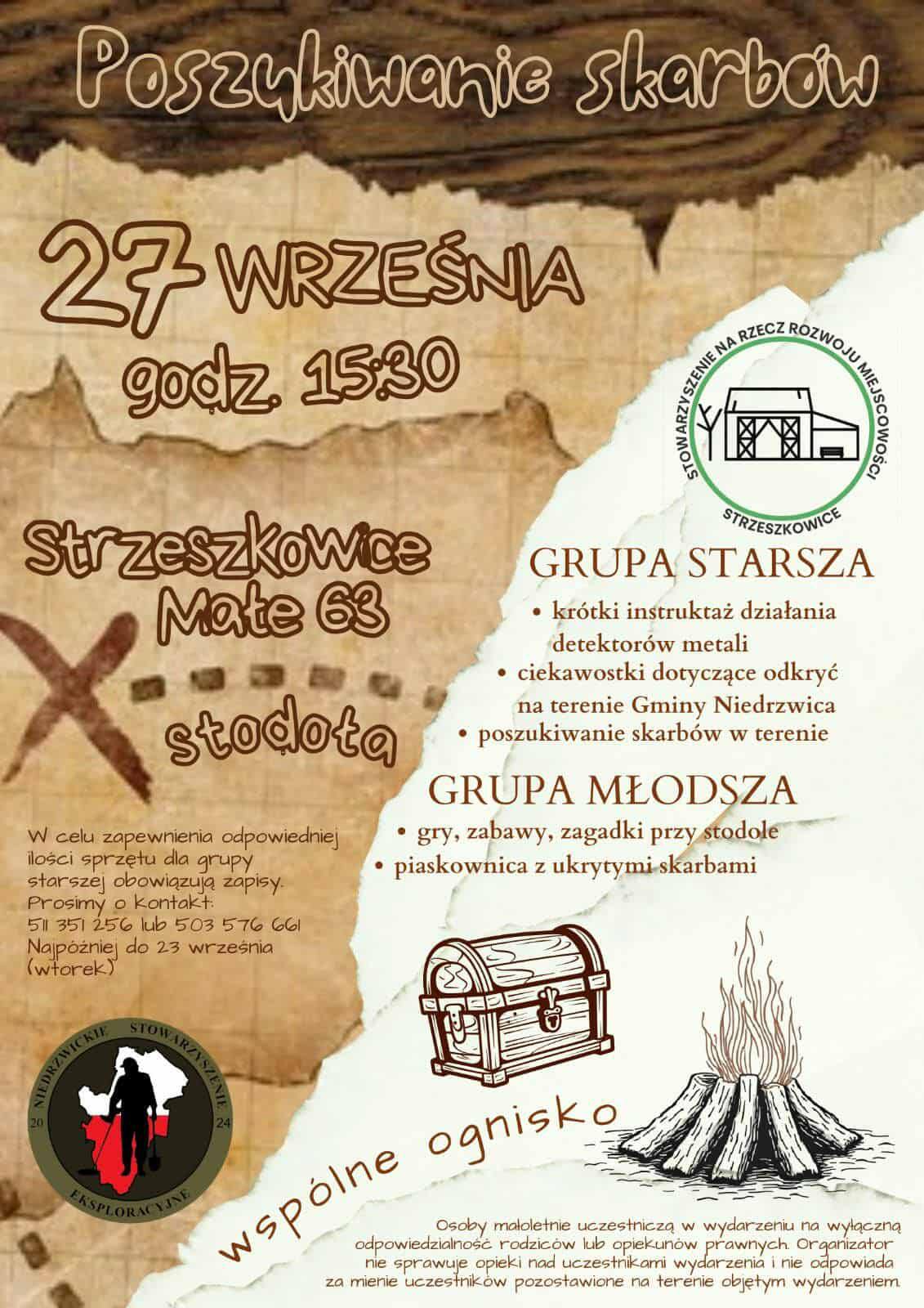 Nauka historii nie musi być nudna – może być prawdziwą przygodą. Udowodnili to pasjonaci z Niedrzwickiego Stowarzyszenia Eksploracyjnego i Stowarzyszenia na Rzecz Rozwoju Miejscowości Strzeszkowice, organizując wyjątkowe poszukiwanie skarbów w dniu 27 września br. w Strzeszkowicach Małych.