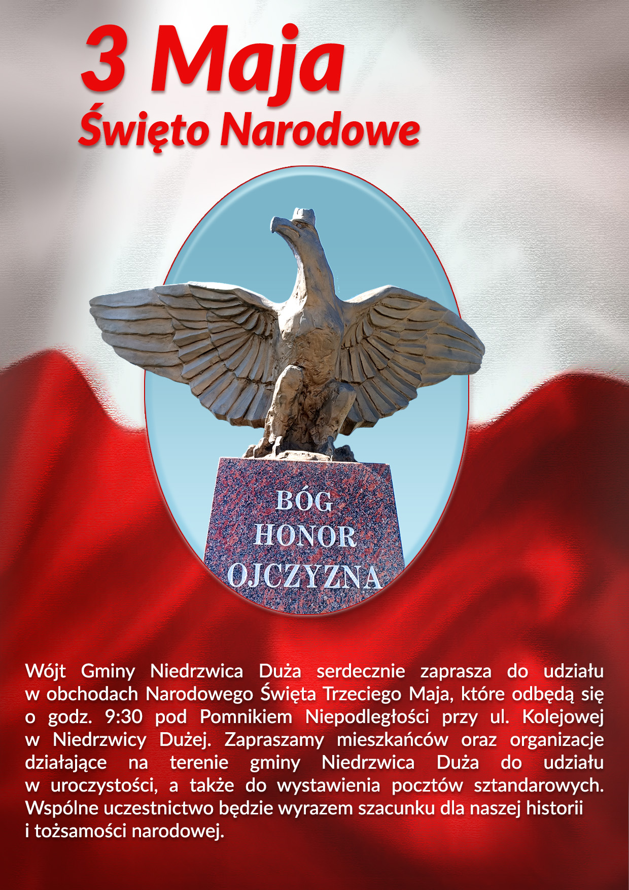 Wójt Gminy Niedrzwica Duża zaprasza do udziału w obchodach Narodowego Święta Konstytucji Trzeciego Maja, które odbędą się