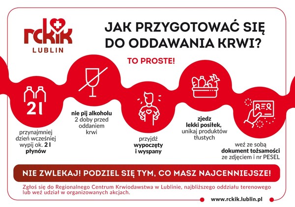 Dodatkowych informacji udziela Regionalne Centrum Krwiodawstwa i Krwiolecznictwa w Lublinie - ul. Żołnierzy Niepodległej 8.
