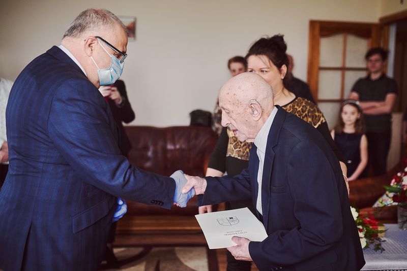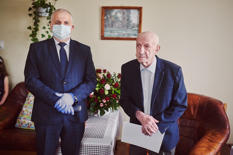 Jubilat otrzymał pozdrowienia z wyrazami szacunku od Premiera Mateusza Morawieckiego. W tym uroczystym dniu Pana Antoniego odwiedził Wójt Gminy Pan Ryszard Golec i Sekretarz Gminy Pani Renata Leszcz.