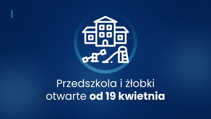 - Żłobki i przedszkola – czynne od 19 kwietnia dla wszystkich dzieci.