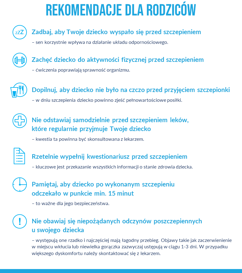 Od 7 czerwca rodzice mogą rejestrować dzieci od 12. roku życia na szczepienie przeciw COVID-19. Aktualnie szczepienia odbywają się w punktach populacyjnych i powszechnych. W tych miejscach jest realizowany cały proces szczepienia, który obejmuje: