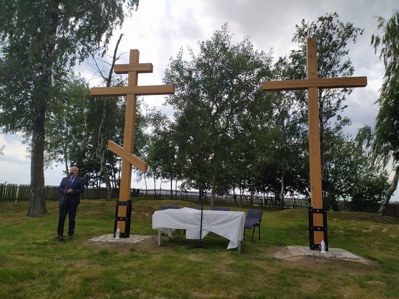 Po przemówieniach uroczyście złożono wieńce przy nowo poświęconych krzyżach.