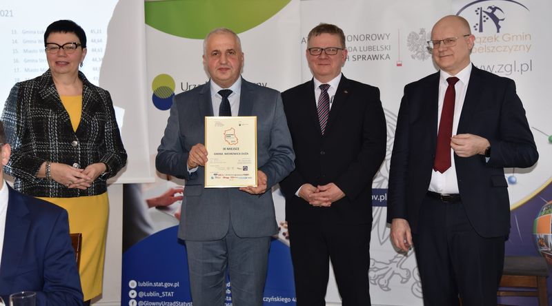 Informujemy, że Gmina Niedrzwica Duża uzyskała dziewiąte miejsce wśród 209 gmin województwa lubelskiego w Rankingu Gmin Lubelszczyzny 2021 zorganizowanym przez Fundację Rozwoju Demokracji Lokalnej przy partnerstwie Urzędu Statystycznego w Lublinie. Tym samym nasza gmina osiągnęła duży sukces awansując, aż o dziesięć pozycji w porównaniu do ubiegłorocznej edycji rankingu (wtedy gmina uplasowała się na 19. miejscu).