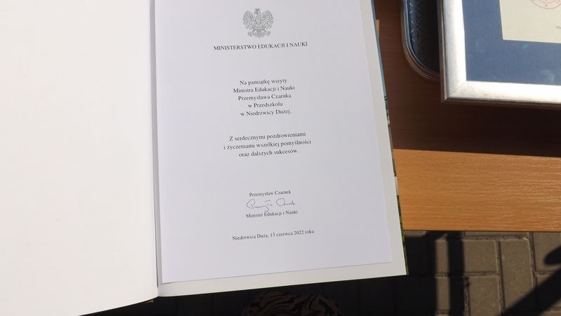 W uroczystościach udział wzięli: Ksiądz Biskup Adam Bab, Minister Edukacji i Nauki Przemysław Czarnek, Dorota Zwolak reprezentująca Pana Ministra Sobonia, Marek Krakowski w imieniu Marszałka Województwa Lubelskiego, Wojewoda Lubelski Lech Sprawka, Starosta Lubelski Zdzisław Antoń, Lubelski Kurator Oświaty Teresa Misiuk, Dyrektor Regionalny Banku Gospodarstwa Krajowego Tomasz Bembenek, Przewodniczący Rady Gminy Rafał Dziekanowski, Ksiądz Proboszcz Parafii w Niedrzwicy Dużej Marek Hawrylak, Dyrektor Przedszkola w Niedrzwicy Dużej Zofia Gąska, Dyrektor Szkoły Podstawowej w Niedrzwicy Dużej Andrzej Pastuszak, Skarbnik Gminy Niedrzwica Duża Janusz Dumin, Kierownik Referatu Oświaty i Administracji Marta Słotwińska, Prezes Spółki Komunalnej Nałęcz Mariusz Zgórka, Przewodnicząca Rady Rodziców przy Przedszkolu w Niedrzwicy Dużej Dorota Jaśkowska, Wykonawca Firma INS-BUD, Projektant Marian Smolyn oraz przedszkolaki i ich rodzice.