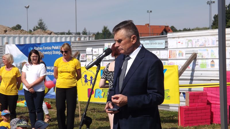 Nie zabrakło również występów przedszkolaków. Po występach wszyscy udali się na plac budowy, następnie Pan Wójt zaprosił gości do budynku PKP na ul. Kolejowej na poświęcenie budynku oraz poczęstunek.