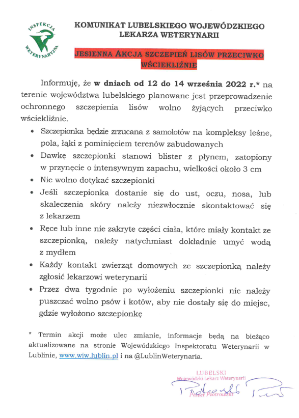 Jesienna akcja szczepień lisów przeciwko wściekliźnie