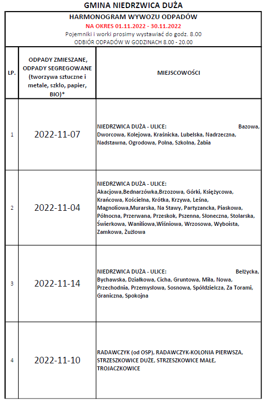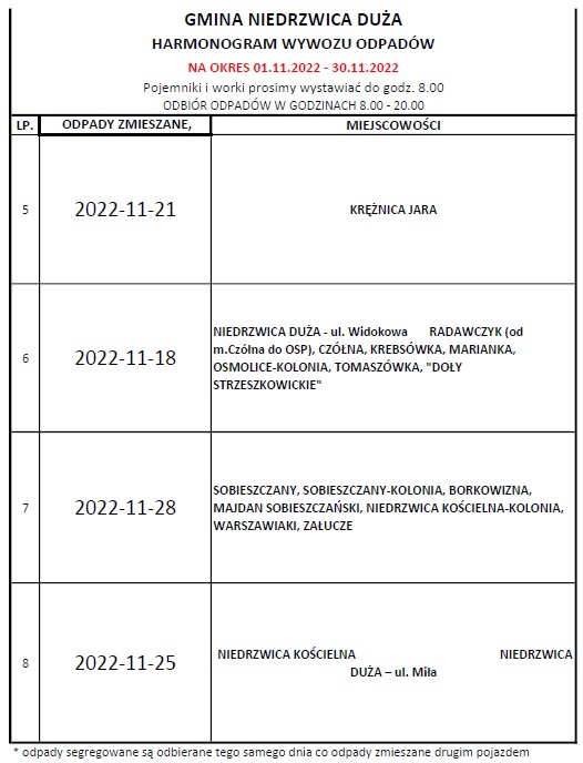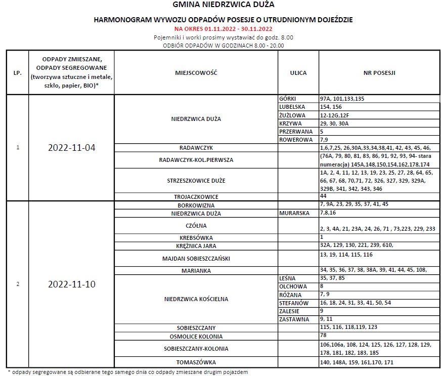 Harmonogram wywozu odpadów z posesji o utrudnionym dojeździe - pdf