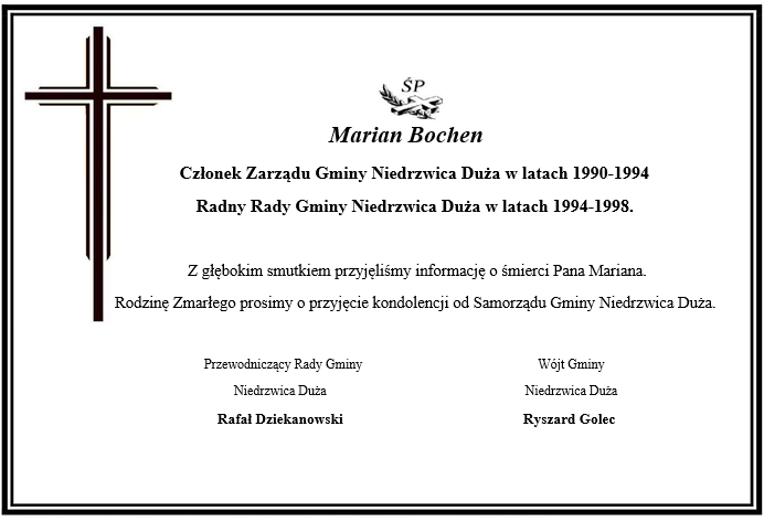 Kondolencje - dn. 20.03.2023 r.Archiwum