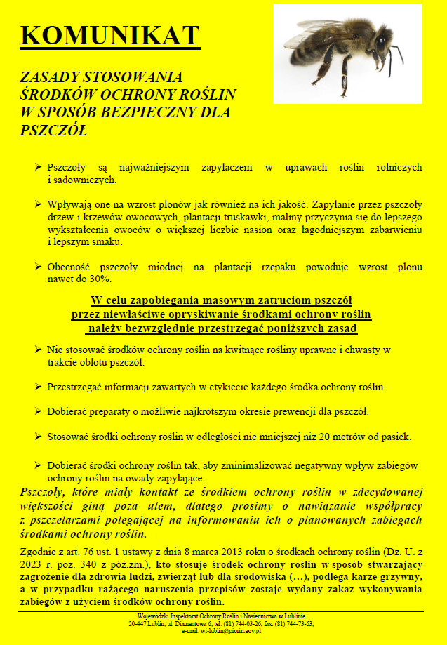 Komunikat: "Chroniąc rośliny - pamiętajmy o pszczołach"Archiwum