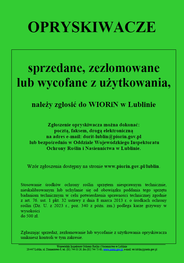 Komunikat: "Weryfikacja opryskiwaczy"