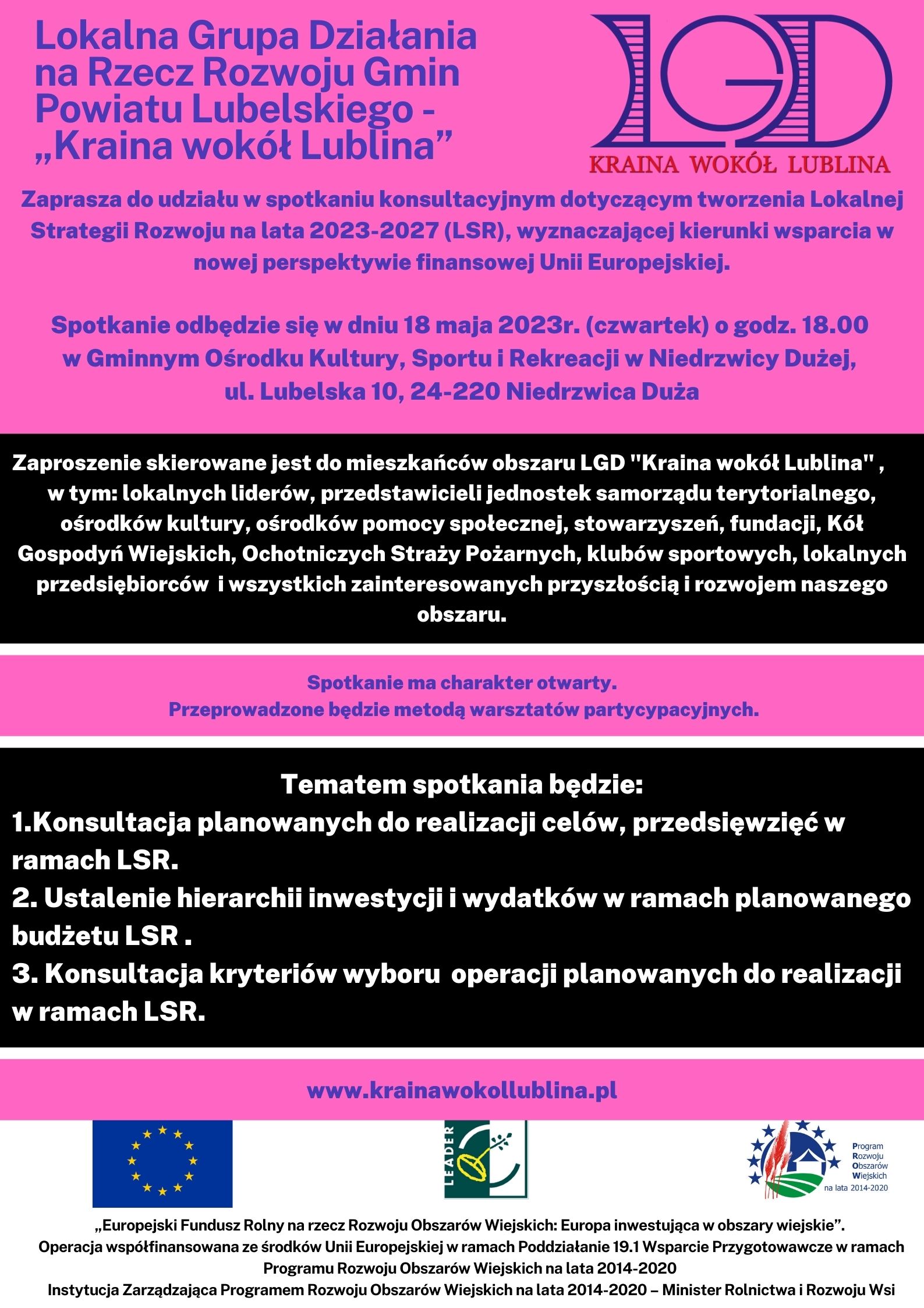 Spotkanie konsultacyjne dot. tworzenia Lokalnej Strategii Rozwoju na lata 2023-2027 wyznaczającej kierunki wsparcia w nowej perspektywie finansowej Unii Europejskiej - dn. 18.05.2023r.