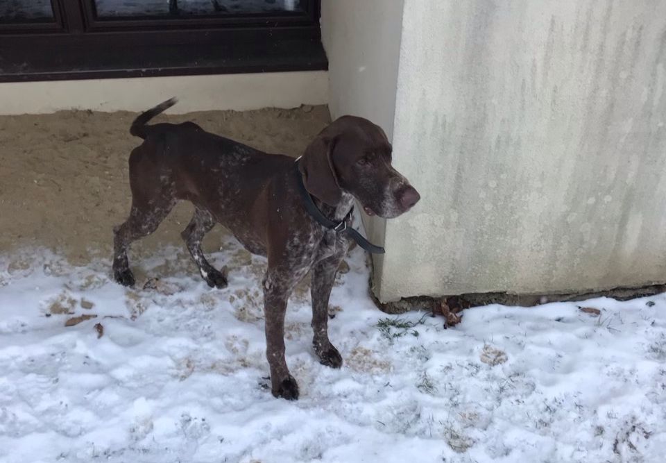 W nocy z 30.06. na 01.07.2023 r. zaginął pies rasy wyżeł niemiecki koloru brązowo - dropiatego. W dniu zaginięcia miał ciemnoróżową obrożę.