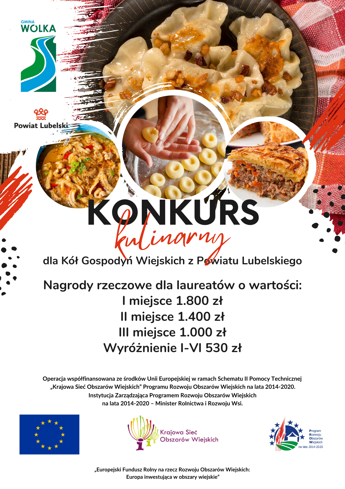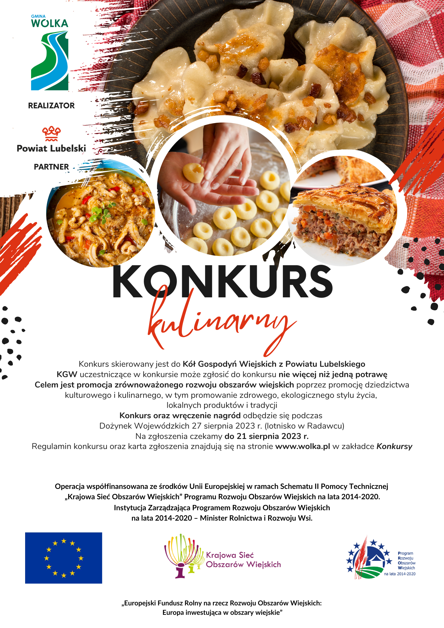 Zapraszamy do wzięcia udziału w konkursie kulinarnym dla Kół Gospodyń Wiejskich z Powiatu Lubelskiego. Celem konkursu jest promocja zrównoważonego rozwoju obszarów wiejskich poprzez promocję dziedzictwa kulturowego i kulinarnego, w tym promowanie zdrowego, ekologicznego stylu życia, lokalnych produktów i tradycji.