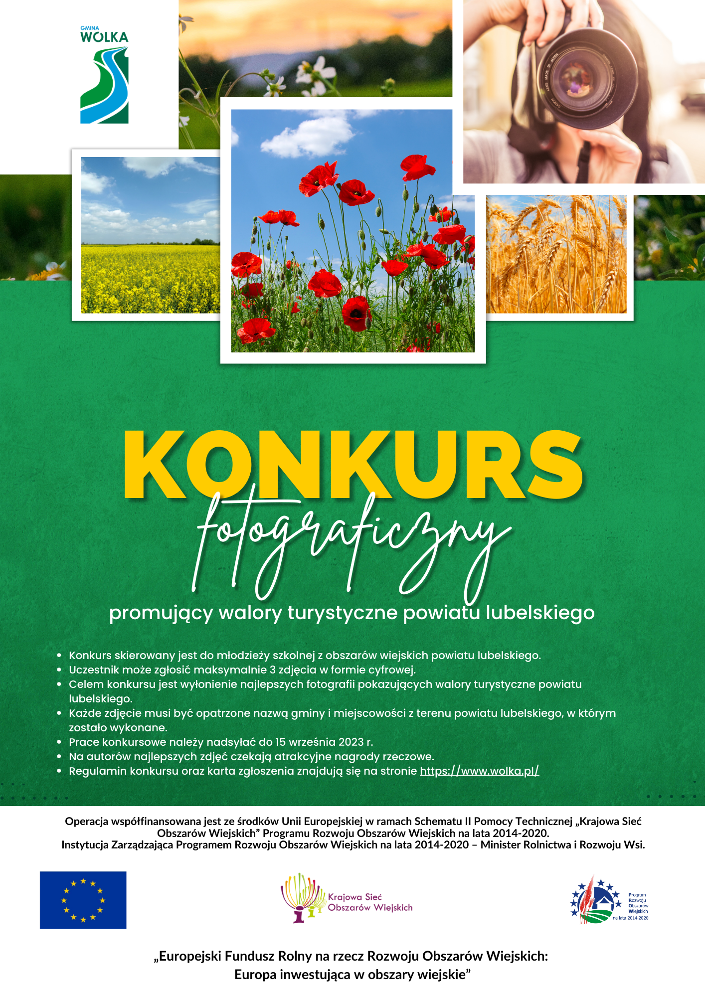 Wystarczy, że wykonasz i przyślesz do nas zdjęcie pokazujące walory turystyczne, środowiskowe lub kulturowe miejsca, w którym mieszkasz lub lubisz spędzać swój wolny czas. Nadsyłane zdjęcia powinny być opatrzone nazwą gminy i miejscowości z terenu powiatu lubelskiego, w którym zostało wykonane. Każdy może nadesłać maksymalnie 3 zdjęcia, które wezmą udział w konkursie.