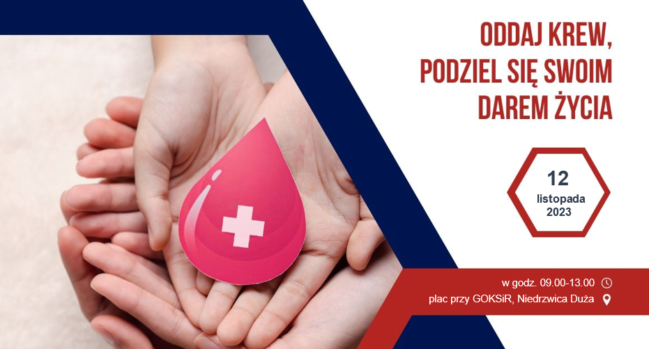 Krew będzie można oddawać w mobilnym ambulansie w godzinach od 9.00 do 13.00 na placu przed GOKSiR w Niedrzwicy Dużej.