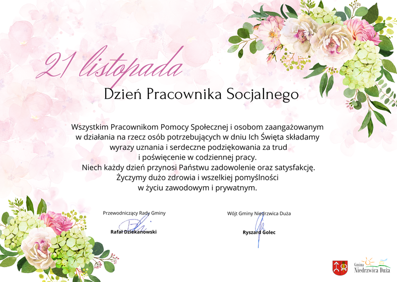 Życzenia z okazji Dnia Pracownika Socjalnego - dn. 21.11.2023 r.Archiwum