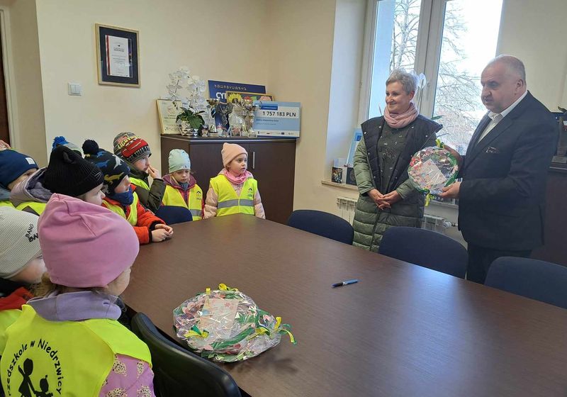 Dzisiaj mieliśmy zaszczyt gościć w swoich progach najmłodszych mieszkańców naszej Gminy - przedszkolaków z Przedszkola w Niedrzwicy Dużej. Razem z Paniami opiekunkami przybyły z wizytą do Urzędu, aby złożyć życzenia wielkanocne i wręczyć prześliczne upominki.