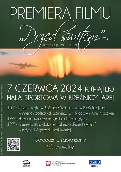 Premiera filmu dokumentalnego "Przed świtem" 7 czerwca (piątek), godz. 18.00 - msza święta w Kościele św. Floriana w Krężnicy Jarej, złożenie kwiatów na grobach poległych; godz. 19.30 - pokaz filmu w hali sportowej w Krężnicy Jarej O FILMIE