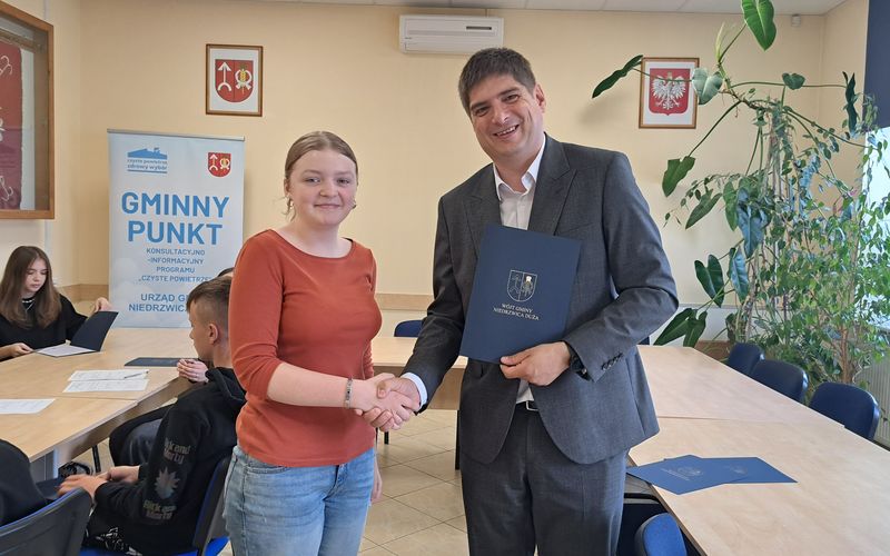 W sesji udział wzięli: Bartosz Dąbrowski - Wójt Gminy Niedrzwica Duża, Kinga Wciseł - Zastępca Wójta Gminy oraz Aleksandra Jamróz - opiekun Młodzieżowej Rady Gminy.