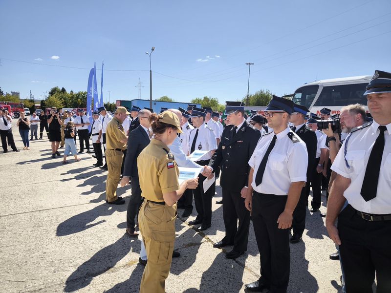 W dniu 13 sierpnia 2024 roku, Bartosz Dąbrowski - Wójt Gminy Niedrzwica Duża uczestniczył w uroczystej zbiórce z okazji przekazania sprzętu pożarniczego dla jednostek OSP i PSP z terenu woj. lubelskiego, która odbyła się na terenie Ośrodka Szkolenia Komendy Wojewódzkiej PSP w Lublinie.