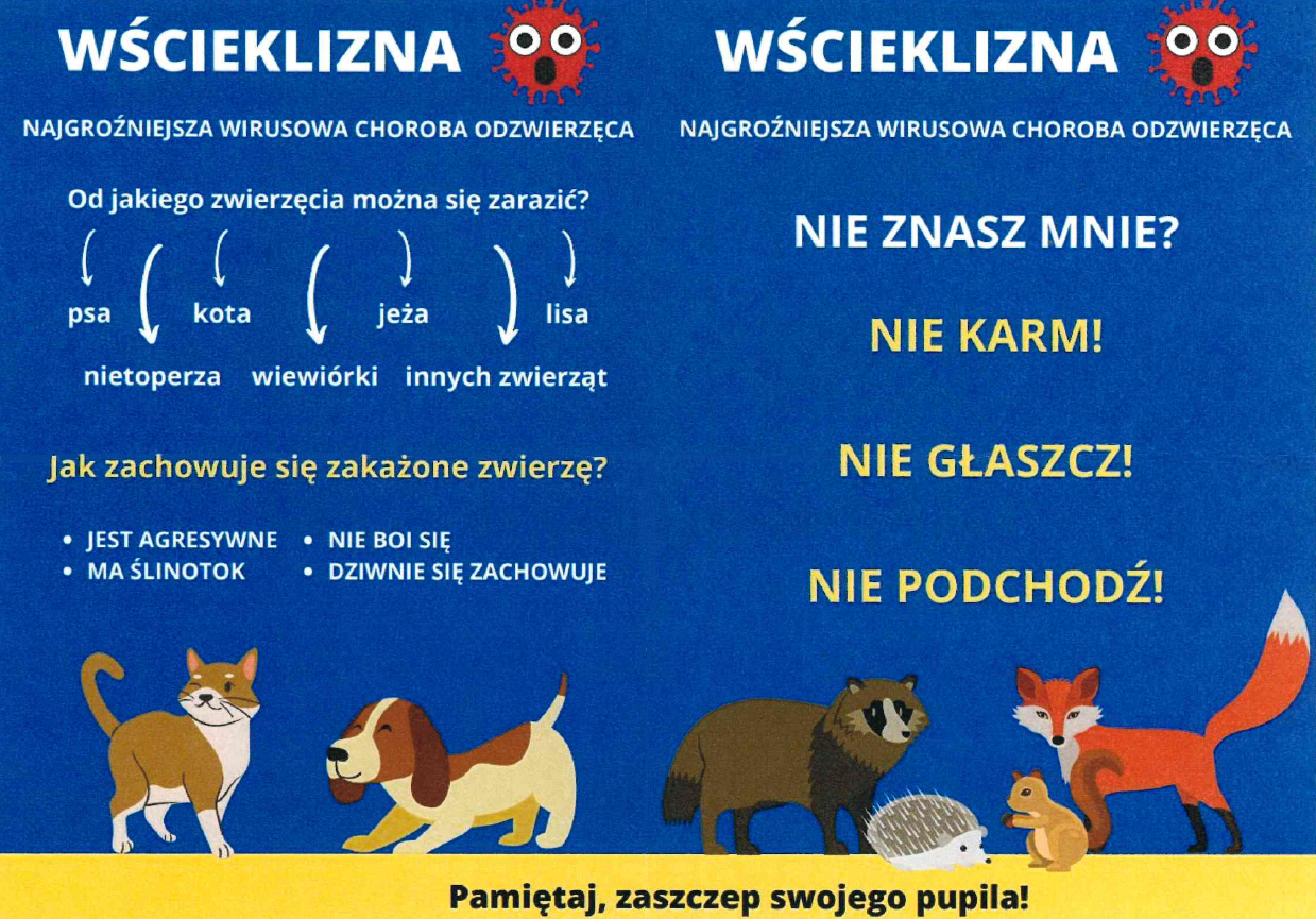 Powiatowy Lekarz Weterynarii w Lublinie informuje o stwierdzeniu w 2024 roku 7 ognisk wścieklizny w województwie lubelskim. Chorobę wykryto na terenie powiatu hrubieszowskiego, tomaszewskiego oraz biłgorajskiego zarówno u zwierząt dzikich jak i domowych. Zagrożenie epizootyczne jest bardzo realne również w innych powiatach. W związku z powyższym należy bezwzględnie zabezpieczyć psy, dokonując obowiązkowego szczepienia przeciwko wściekliźnie.