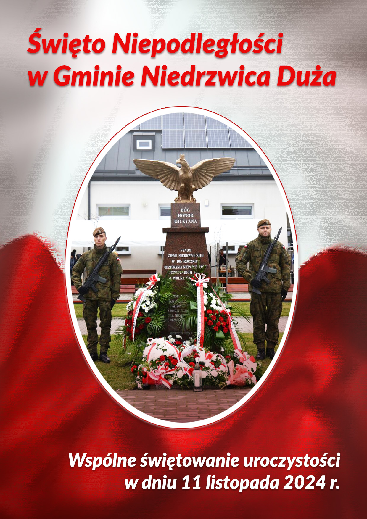 godz. 9.30 – uroczyste podniesienie flagi państwowej na maszt przy Gminnym Ośrodku Kultury, Sportu i Rekreacji w Niedrzwicy Dużej